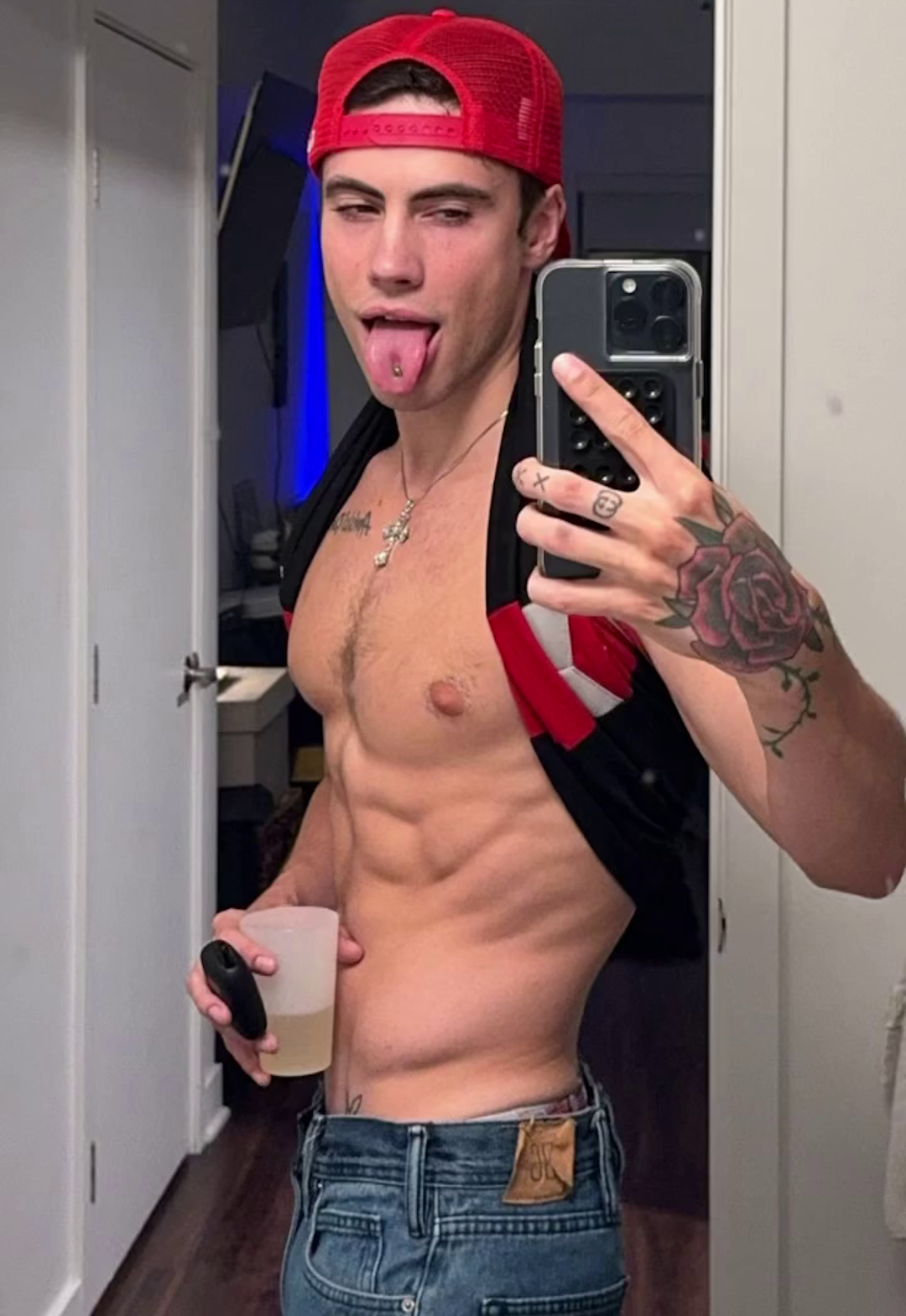 All Hunter wore was a black mesh crop top with soft-looking tassels that swung across his abs as he moved. Like most Spittle, Hunter’s real outfit was his body paint. Hunter had made himself into the picture of a slut ruined utterly by SPIT. His eyeshadow was smeared, arrows pointed to his full lips and called him a “cocksucker”, and his midriff was adorned with crude drawings of dicks and pejoratives like “spit slut” and “frat bitch”. Only the low centre of his abdomen was empty, the perfect place to put a womb tattoo. It was obvious Hunter wanted the full SPIT experience.